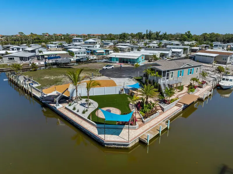 What began as a blank waterfront lot was completely reimagined into a vibrant tropical retreat. We built a full paver deck along the seawall, added synthetic turf for a lush, low-maintenance green zone, and created multiple outdoor living spaces with modern shade sails and custom landscaping. Palms, pops of color, and layered textures bring the entire space to life, transforming it into the ultimate canal-front getaway.
